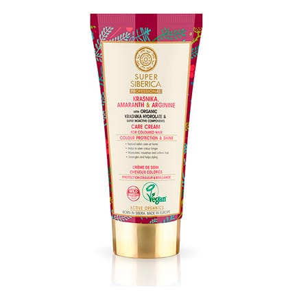 El cuidado en crema profesional para cabello teñido protege el color y le da brillo. Este cuidado basado en hidrolato de arándano de Kamchatka orgánico, enriquecido con aceite de amaranto orgánico, arginina, extractos de rodiola y rosa daúrica orgánicos, ceramidas y vitamina A y Ehidrata y revitaliza el cabello tras aplicar el tinte. La crema, con su ligera textura, es fácil de aplicar y se absorbe rápidamente sin dejar el cabello más pesado. Deja el cabello suave y manejable. Ayuda a proteger la intensidad del color y facilita el cepillado y peinado.